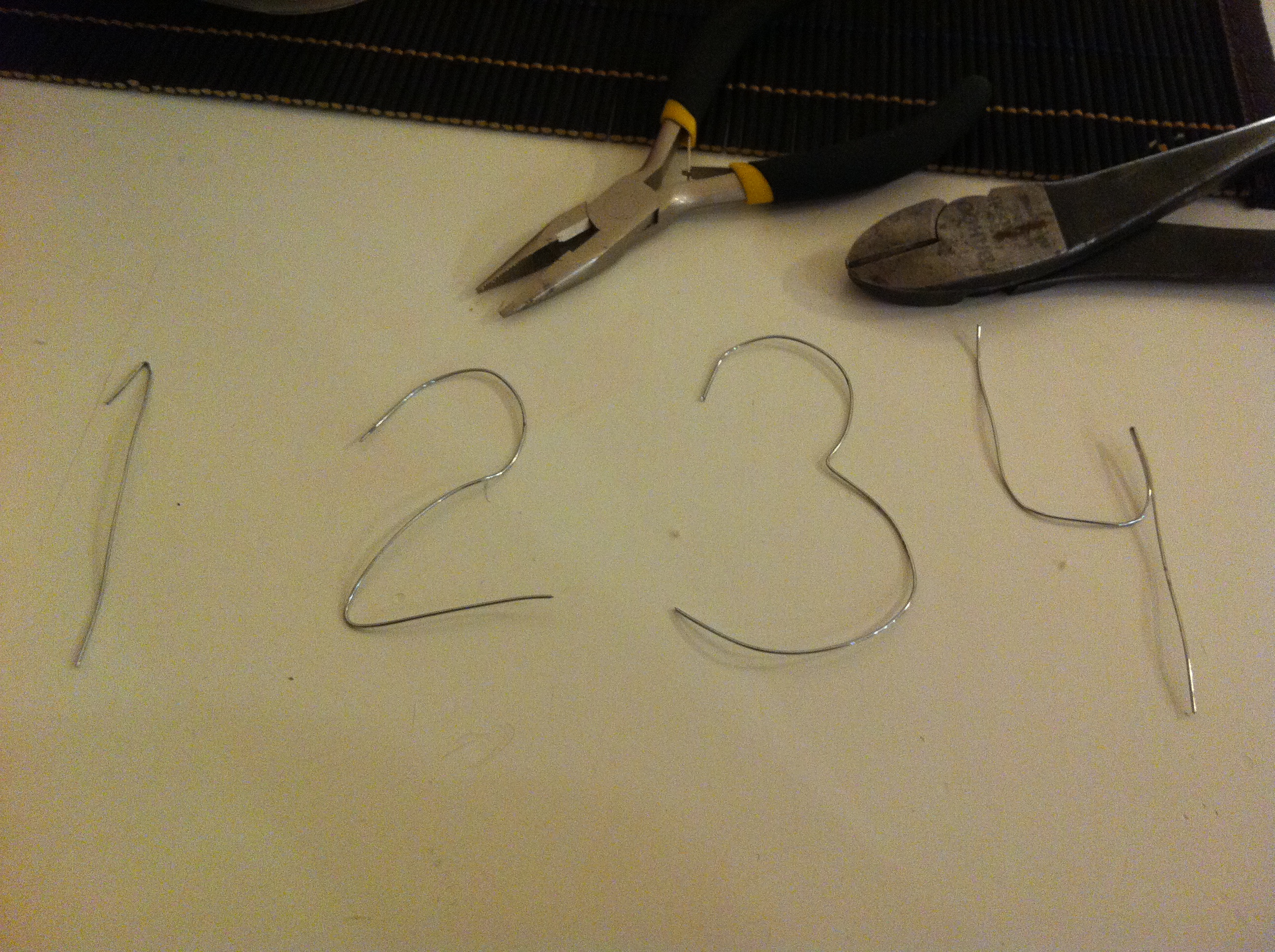 1. Böj tjockare ståltråd till siffror i det här fallet, eller bokstäver som Leia gjorde