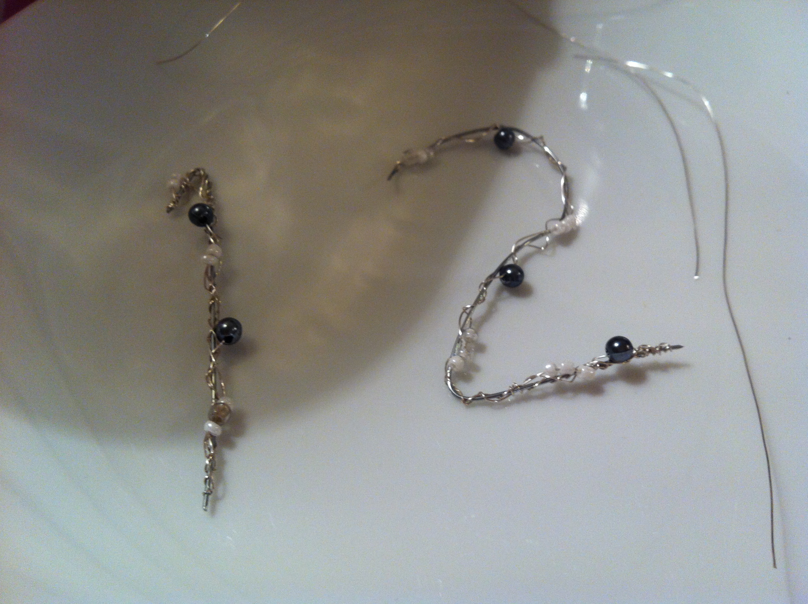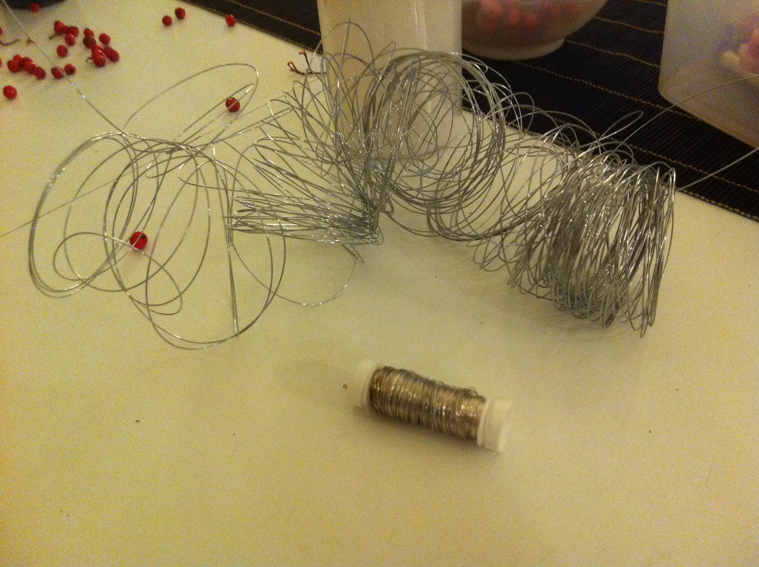 Jag tänkte att jag kanske kunde göra siffror av ståltråd och sedan vira in ståltråden i ett snöre tills det blev lagom tjock och kunde hänga på ljuset. Men hemma hade vi inte något snöre. När jag rotat bland pysselgrejjerna tänkte jag ändå börja med en ståltråd. Då jag även hade tunnare ståltråd och pärlor tänkte jag att det kanske kan bli något av det?