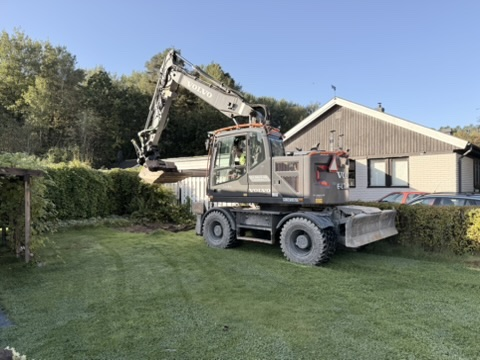 En kompis kusin hade grävskopa och ville gärna hjälpa till mot lite kompensation. Han kom över och hade ett släp grus med sig, sen grävde han ut hela uppfarten på ungefär 30cm djup och tippade i gruset.