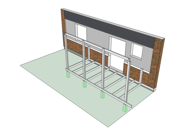 Senaste veckan så har jag rivit ner verandan på framsidan och köpt virke och köpt hem, samt försänkt fyra stycken plintar. Då flera frågat hur det ska bli så tänkte jag lägga ut lite ritning här på hur det kommer bli, håll till godo