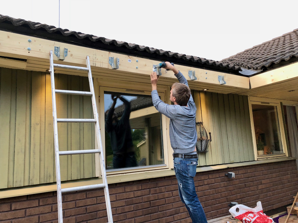 Steg ett var att ta bort stuprännan under taket