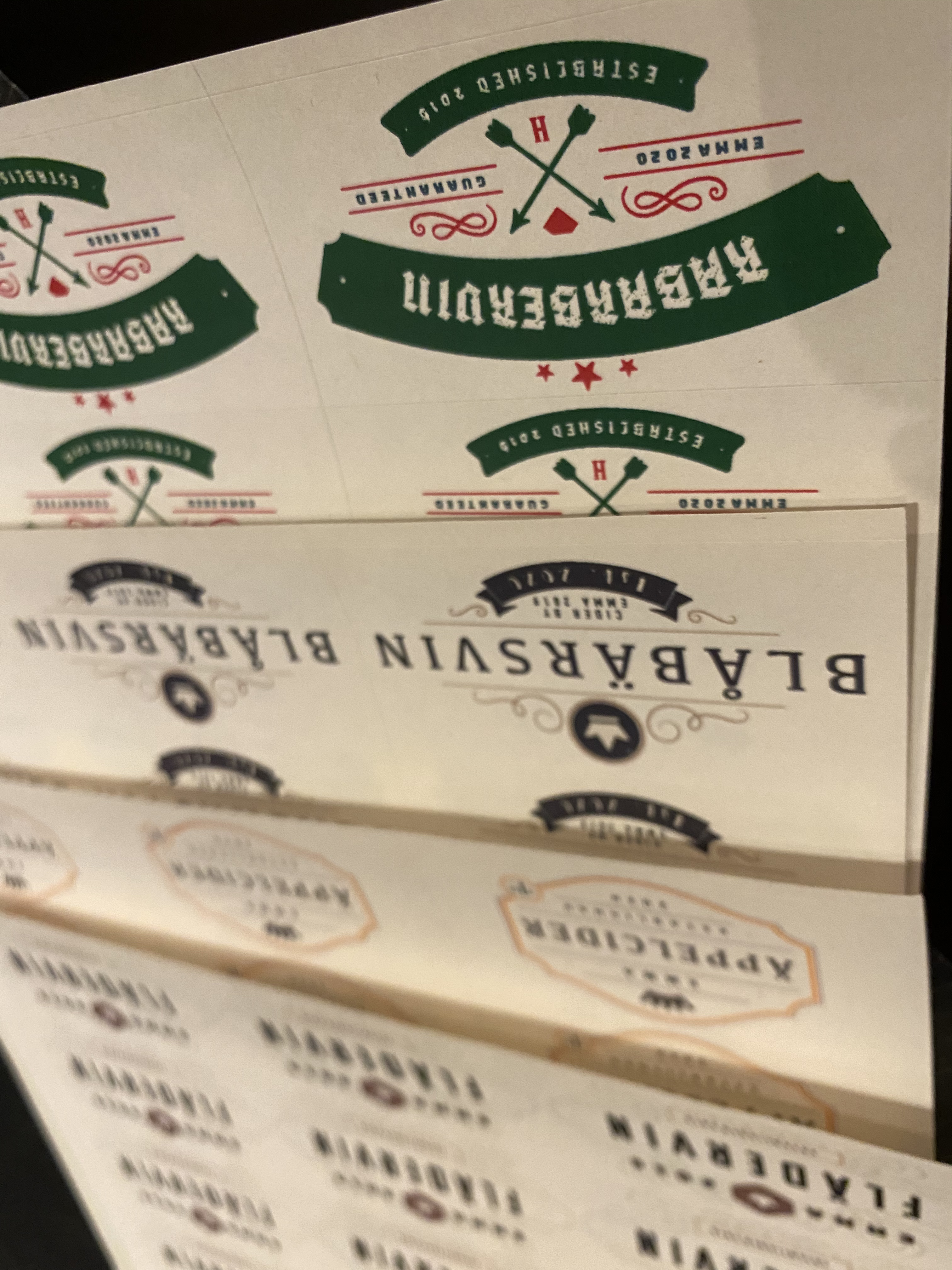 Nästa steg är att etikettera flaskorna snyggare. Här har Jonas varit en stjärna och designat mycket fina etiketter med namn och årgång. Tyvärr var limmet väldigt dåligt så etiketterna lossnade nästan direkt. Jag har nu beställt nya etiketter, som är designade för glasflaskor.