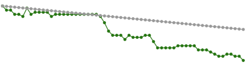 Japp, nu har jag gått ned tretton kilo sedan jag började den 6 mars. Det är 58 dagar sedan, vilket ger en viktnedgång på 0,2 kg per dag. Som man kan se på diagrammet så ligger jag rätt så långt under målkurvan som är inställd på att jag ska ha gått ned 17 kilo till den första september. Det borde jag klara, jag har alltså bara 4 kilo kvar!