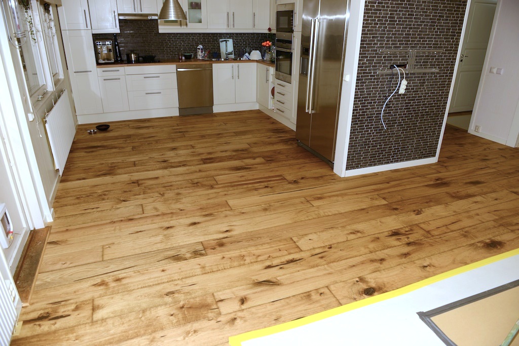 Ok, dom blev inte helt klara idag så vi kan inte flytta tillbaka våra möbler än, men dom kom en bra bit på väg. Köket är nu klart och så här ser det ut. Det är riktigt fint och vi är supernöjda!