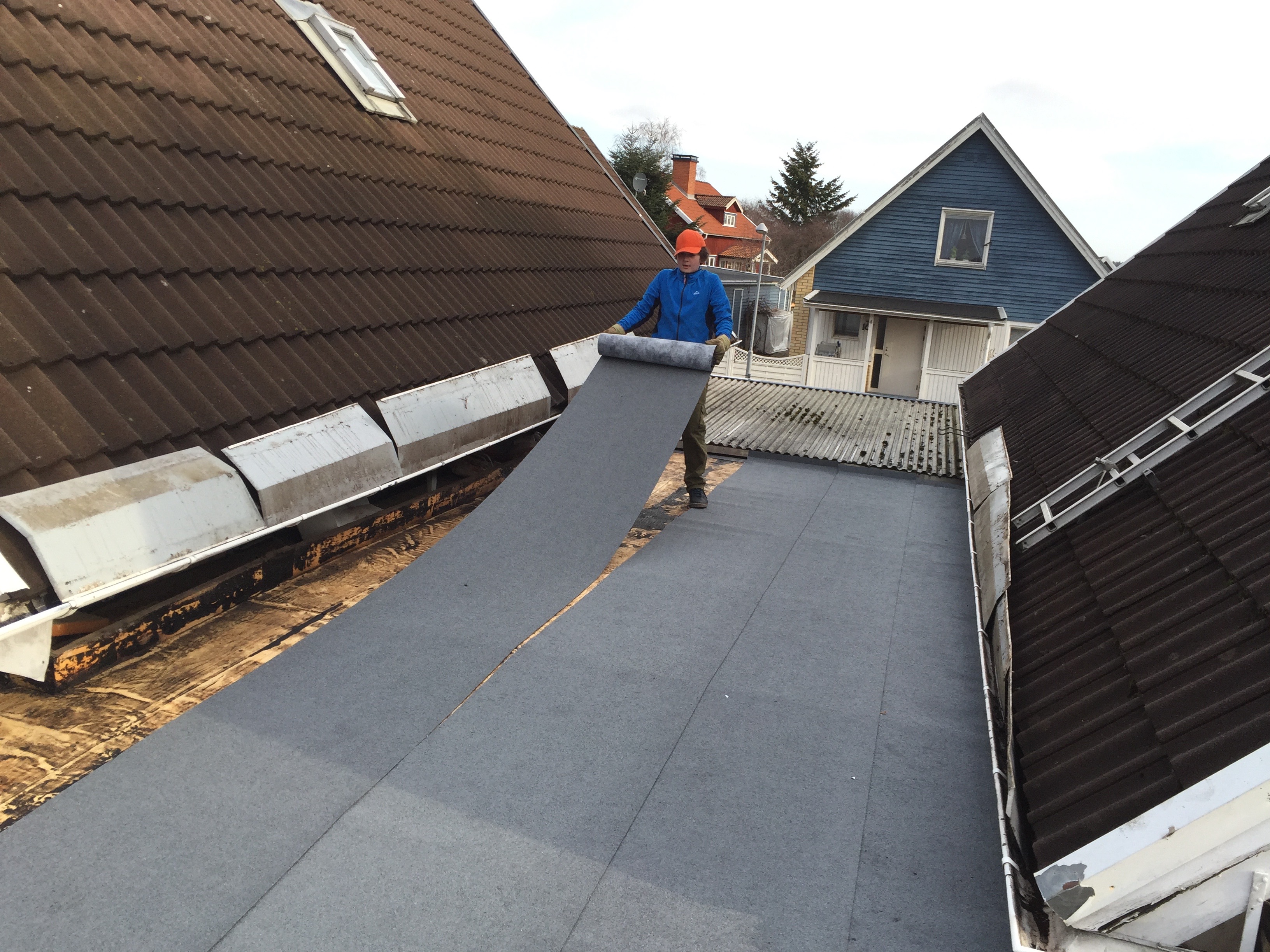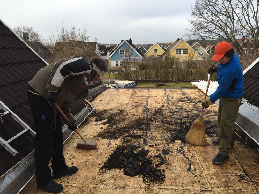 Så, vad kostade kalaset då? Vi valde papp som inte hade limremsa dels för att det var billigare men mest för att det fanns i tiometersvåder så dom täckte hela taket utan en massa spill. Pappen kostade 1 800 kronor plus asfaltslimmet som gick på runt 500 kronor. Sen var det ungefär tre timmars jobb för att få till det, så helt klart välspenderade pengar!