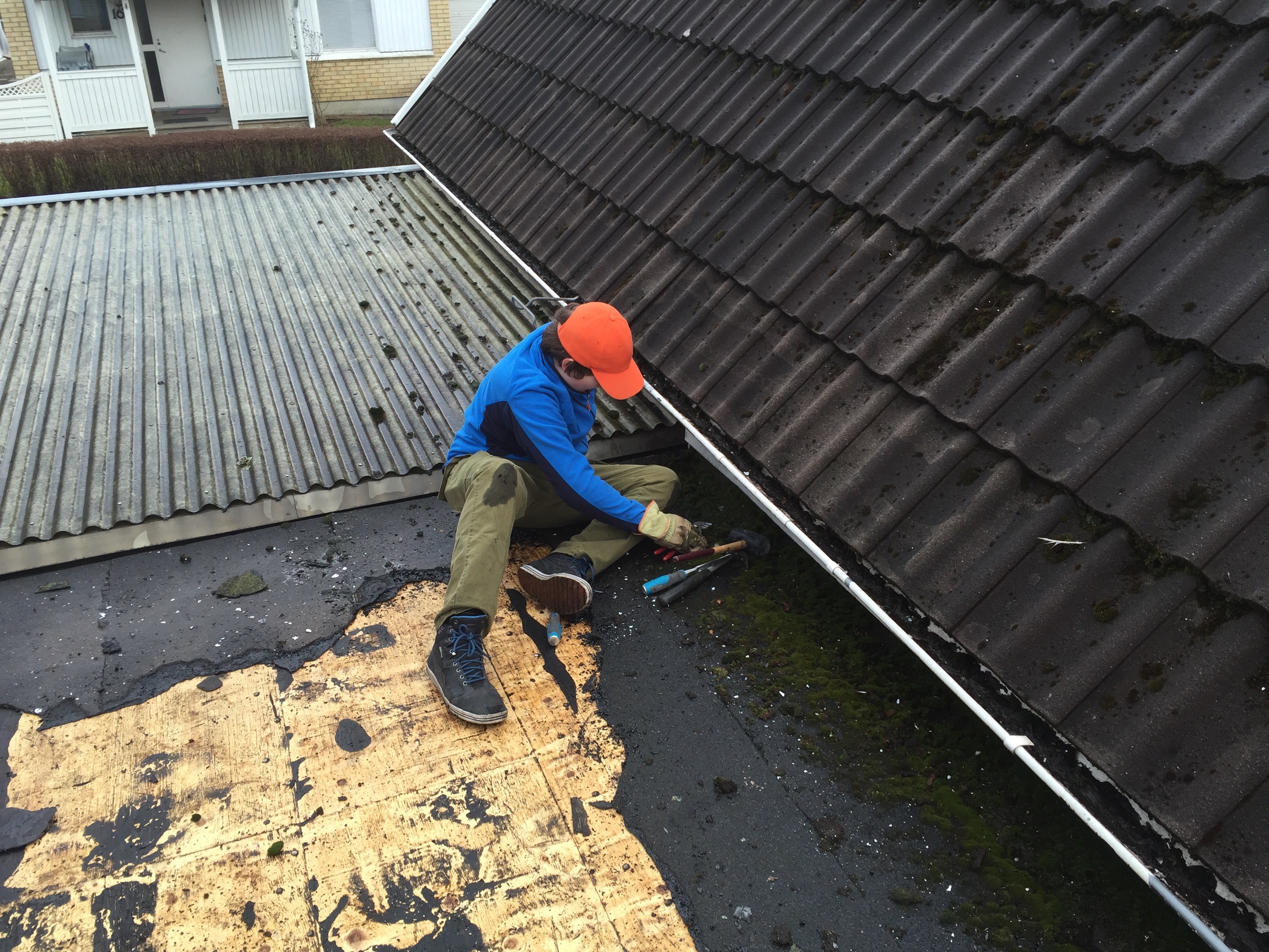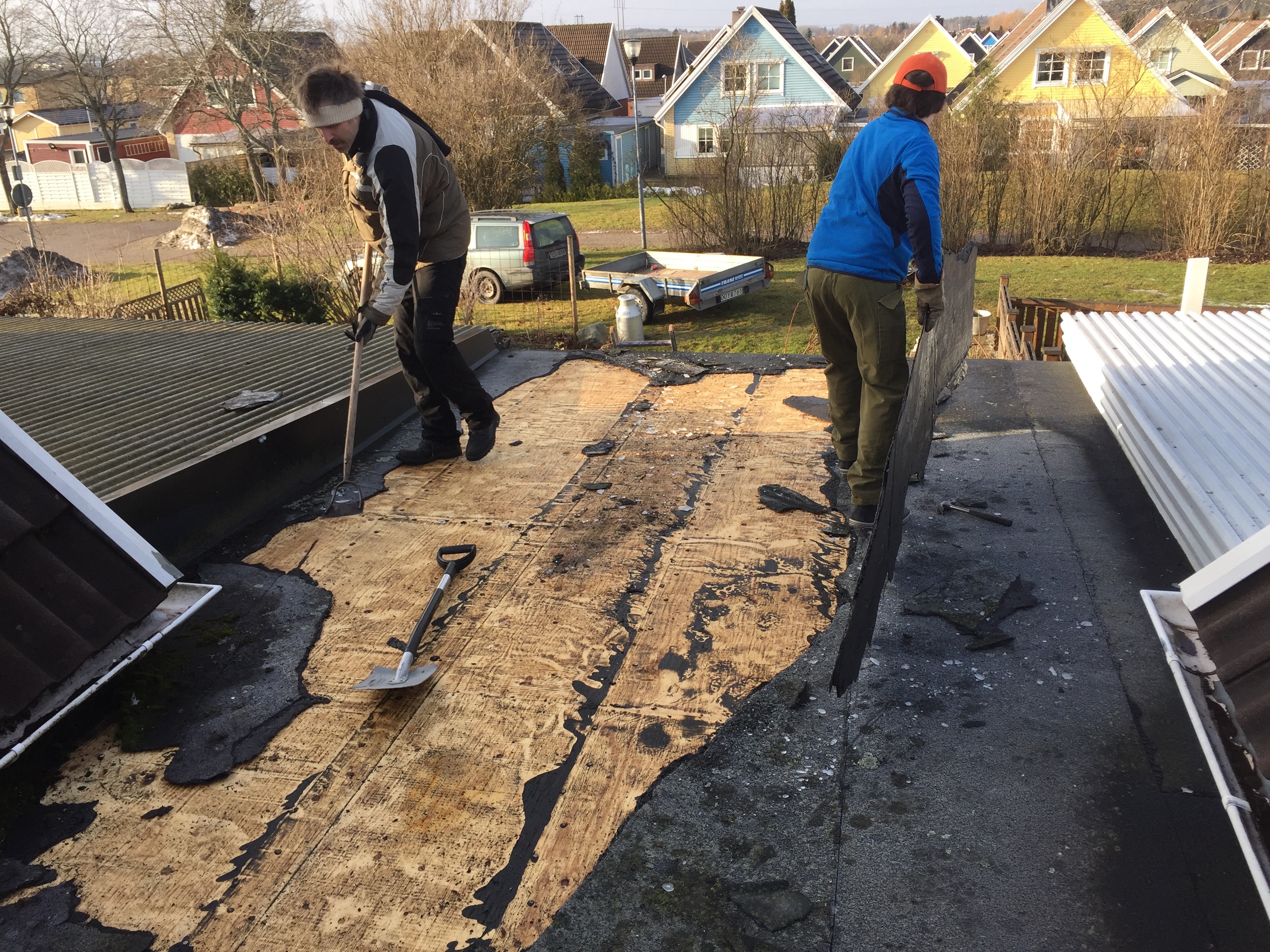 Behöver du byta papptak på garaget? Vårt garage är på 35 kvadratmeter och att anlita någon för att byta tak skulle kosta runt 20 000 kronor. Men eftersom vi ska flytta kändes det som en jobbig kostnad att lägga just nu. Så jag bestämde mig för att göra det själv, har en kompis som har gjort sådant förut så han fick hjälpa till.