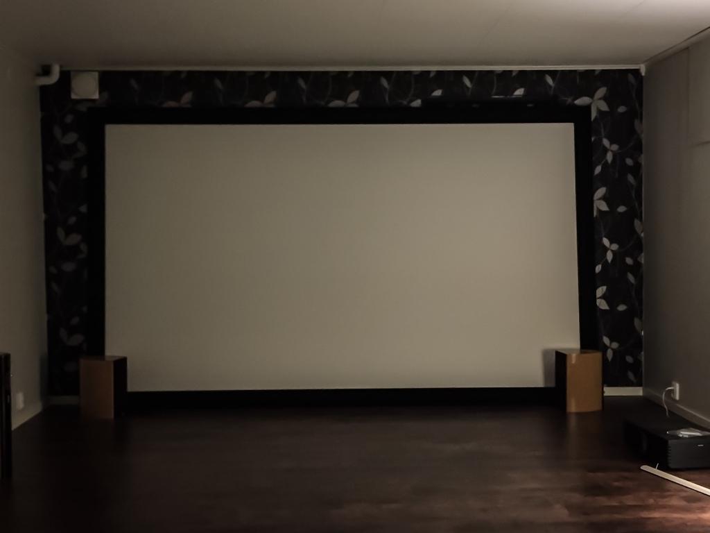Så med all ny yta så kunde vi inte hålla oss och monterade den ramspända duken och ställde upp den mot väggen. Får ställa in den i ett annat rum i källaren sen när vi väl börja måla och bygga om det här rummet.