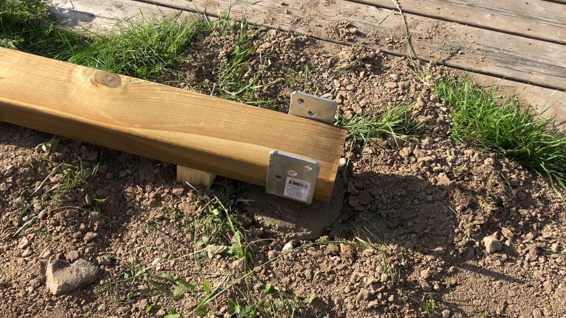 Sen är det bara att börja fästa upp balkarna så det blir rakt och fint i alla led