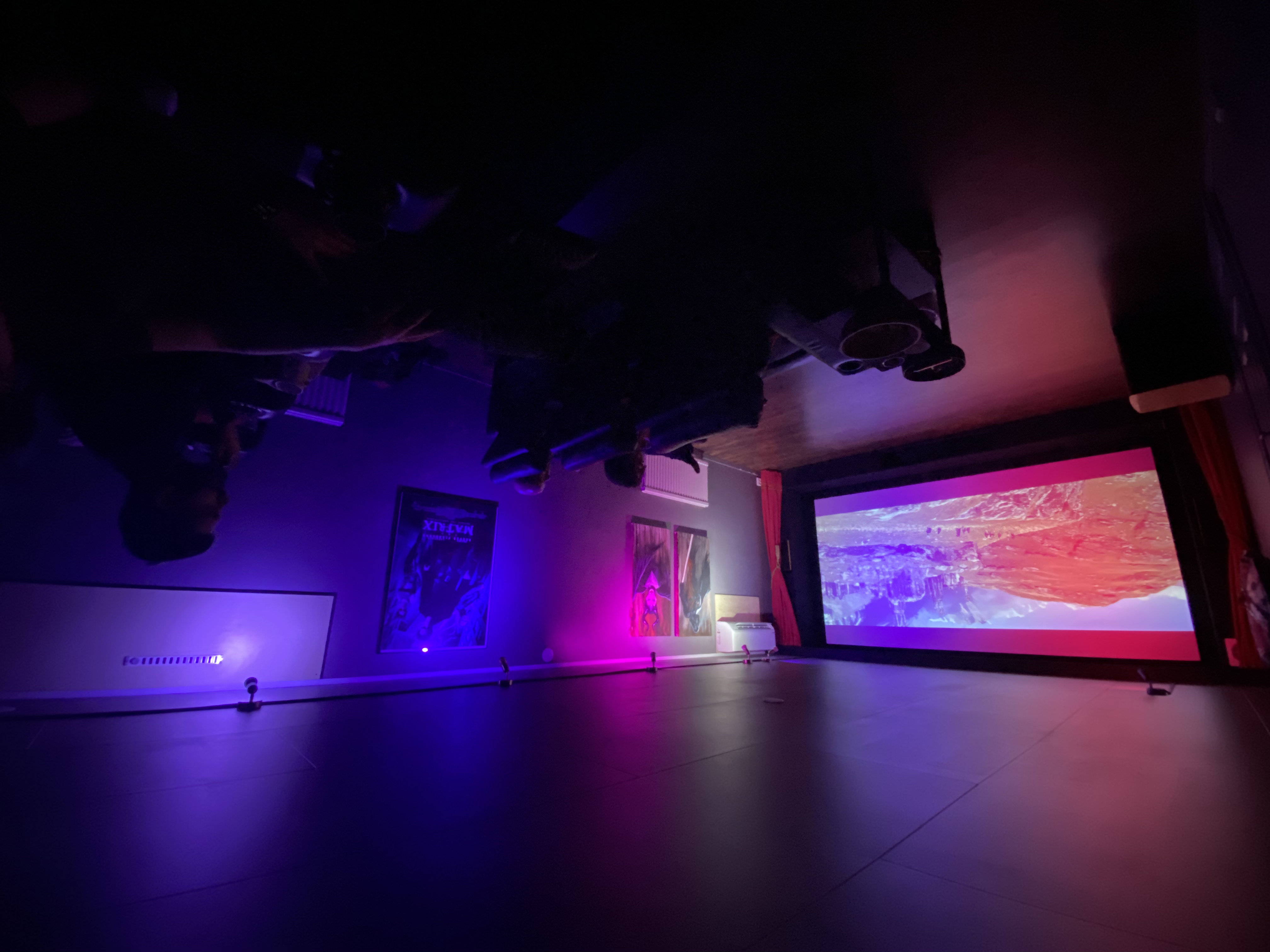 Så här ser rummet ut, det är faktiskt ett riktigt bra rum för en hembio, men det har en hel del begränsningar. En är att de bakre högtalarna har dåligt med utrymme då dörren är precis i hörnet av rummet, så när jag byggde hembion så satte jag upp Canton In-Ceiling högtalare. Dom är inte fantastiska men jag tänkte att det kan säkert duga. Det gjorde det inte.
