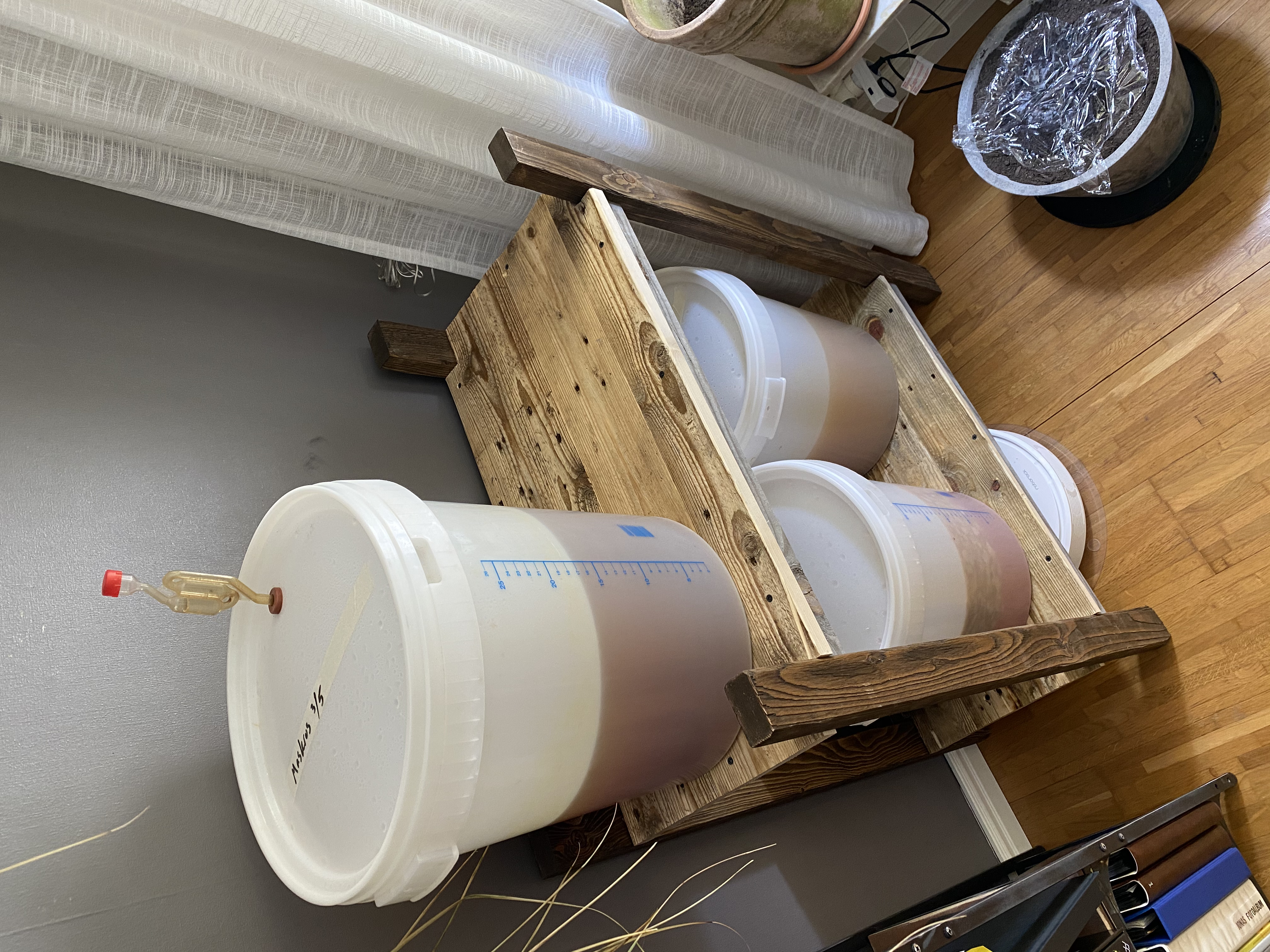 Emma behövde en hylla till sina vintunnor när dom står och jäser, blir lite mer ordning då. Ska även foliera själva tunnorna för dom är rätt så fula, tyvärr.