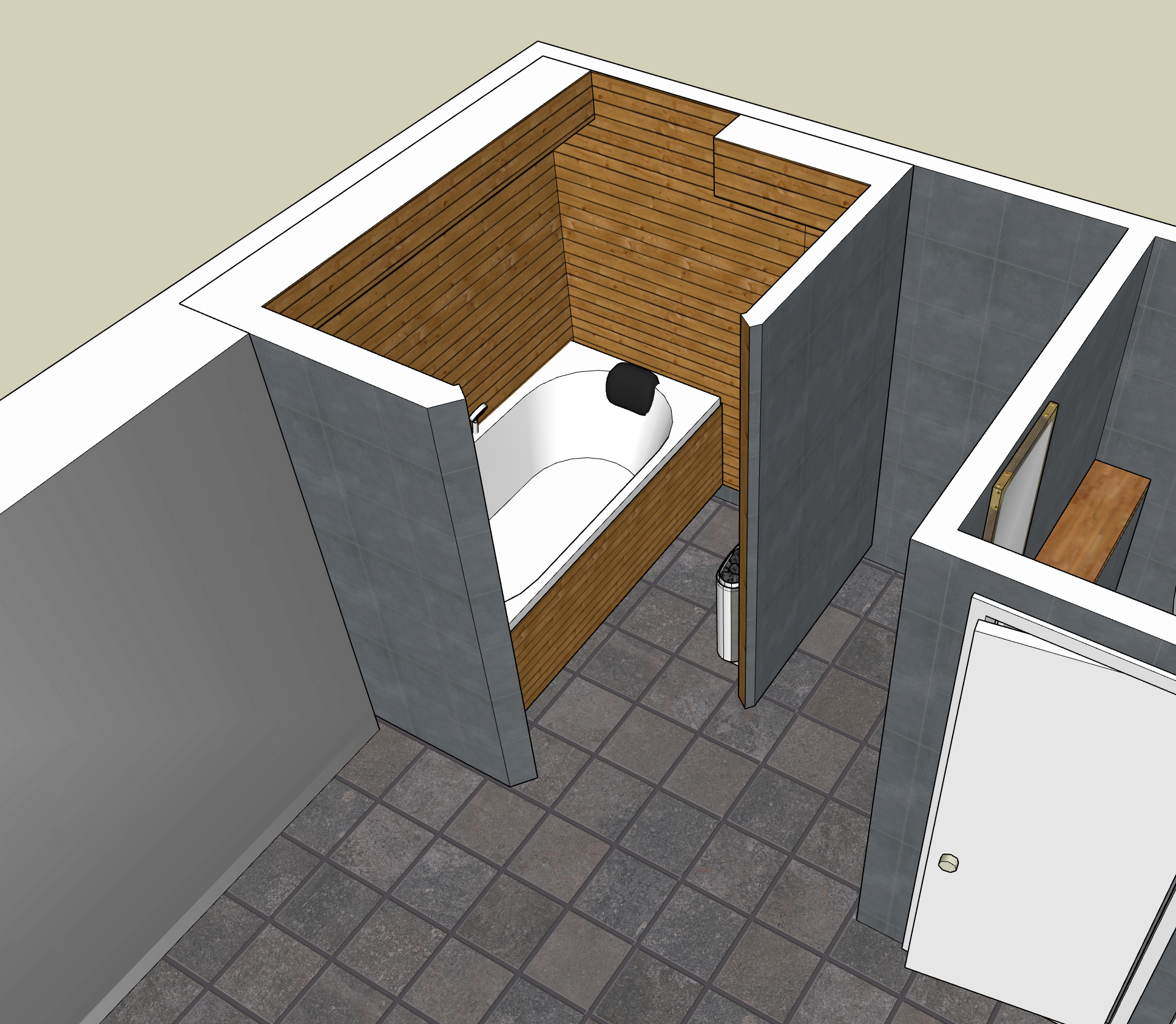 Så kom jag på, varför inte ställa in ett badkar i bastun? Som sagt, vi använder aldrig bastun, det är i sig ett rätt så mysigt rum som kan göras mysigare med rätt belysning, och helt plötsligt så har man ett spa-bad för en bråkdel av kostnaden.