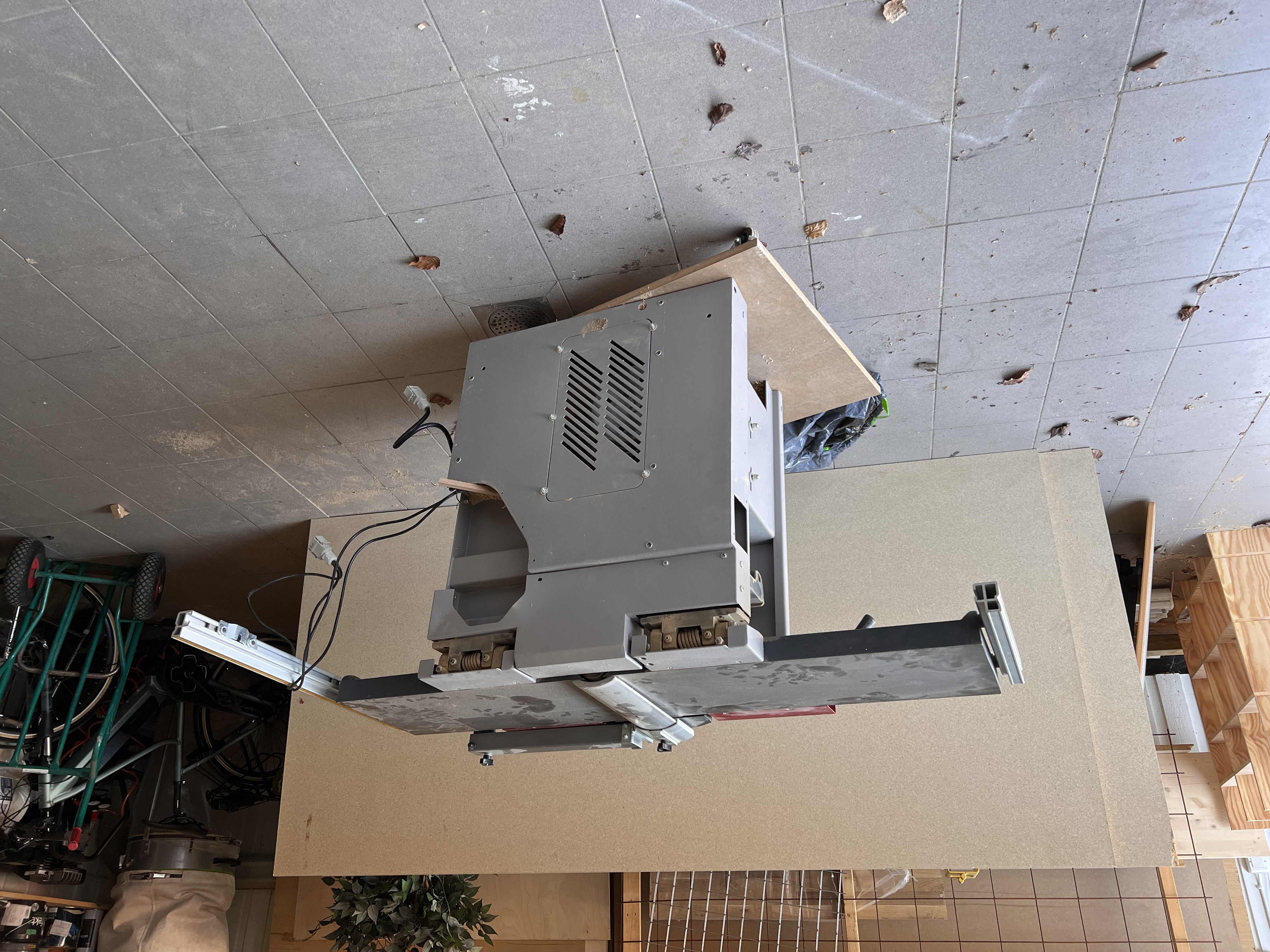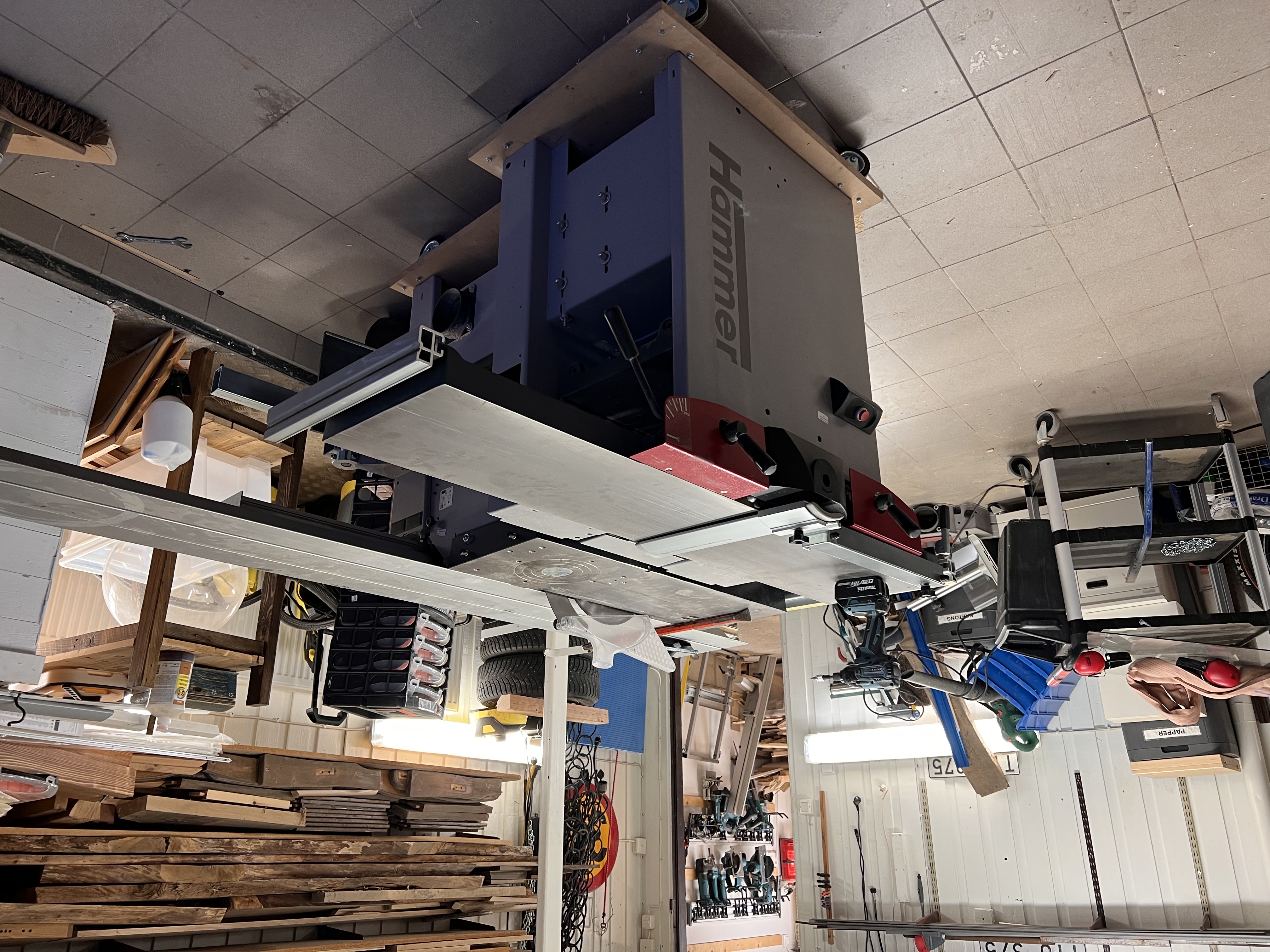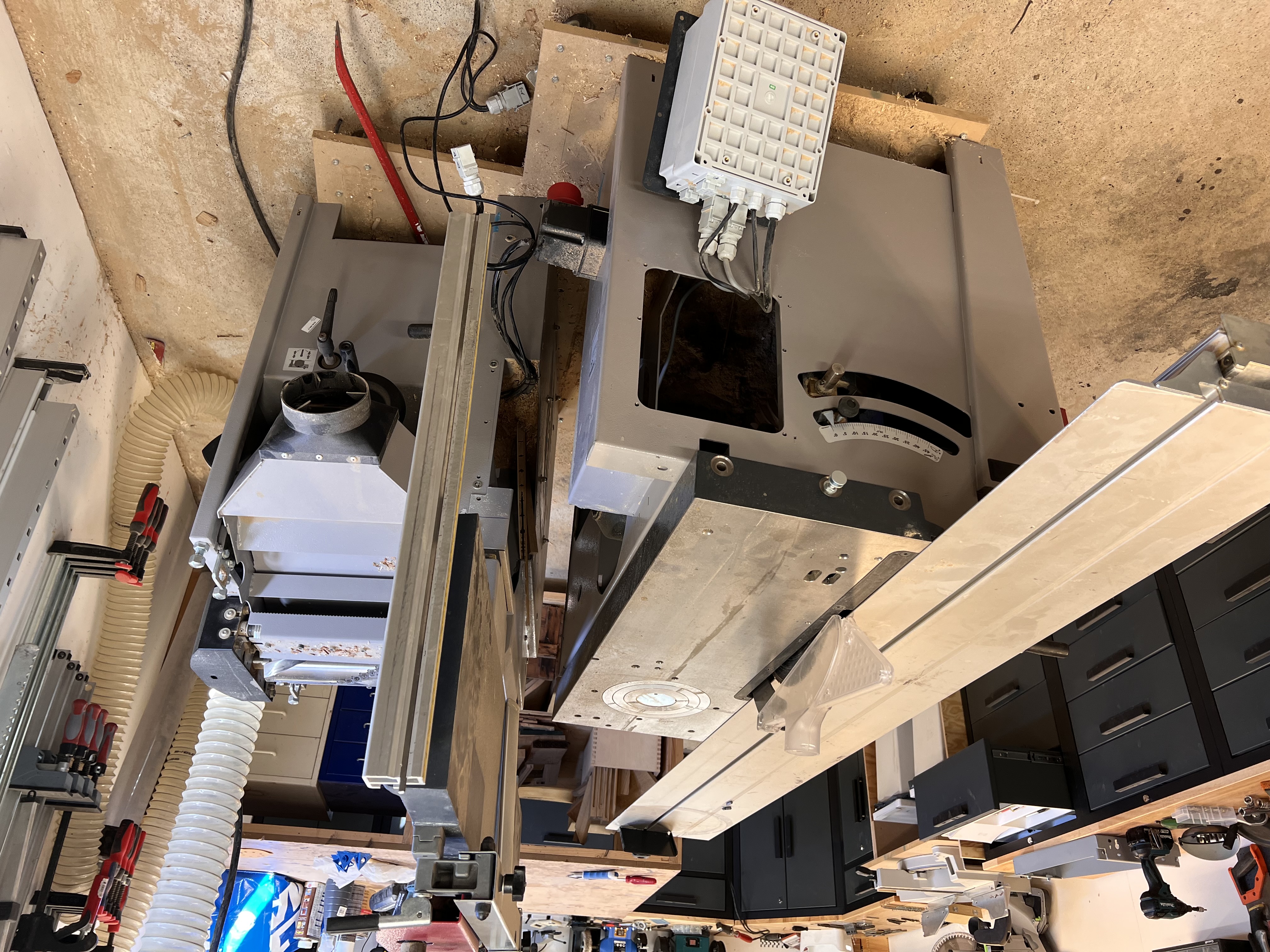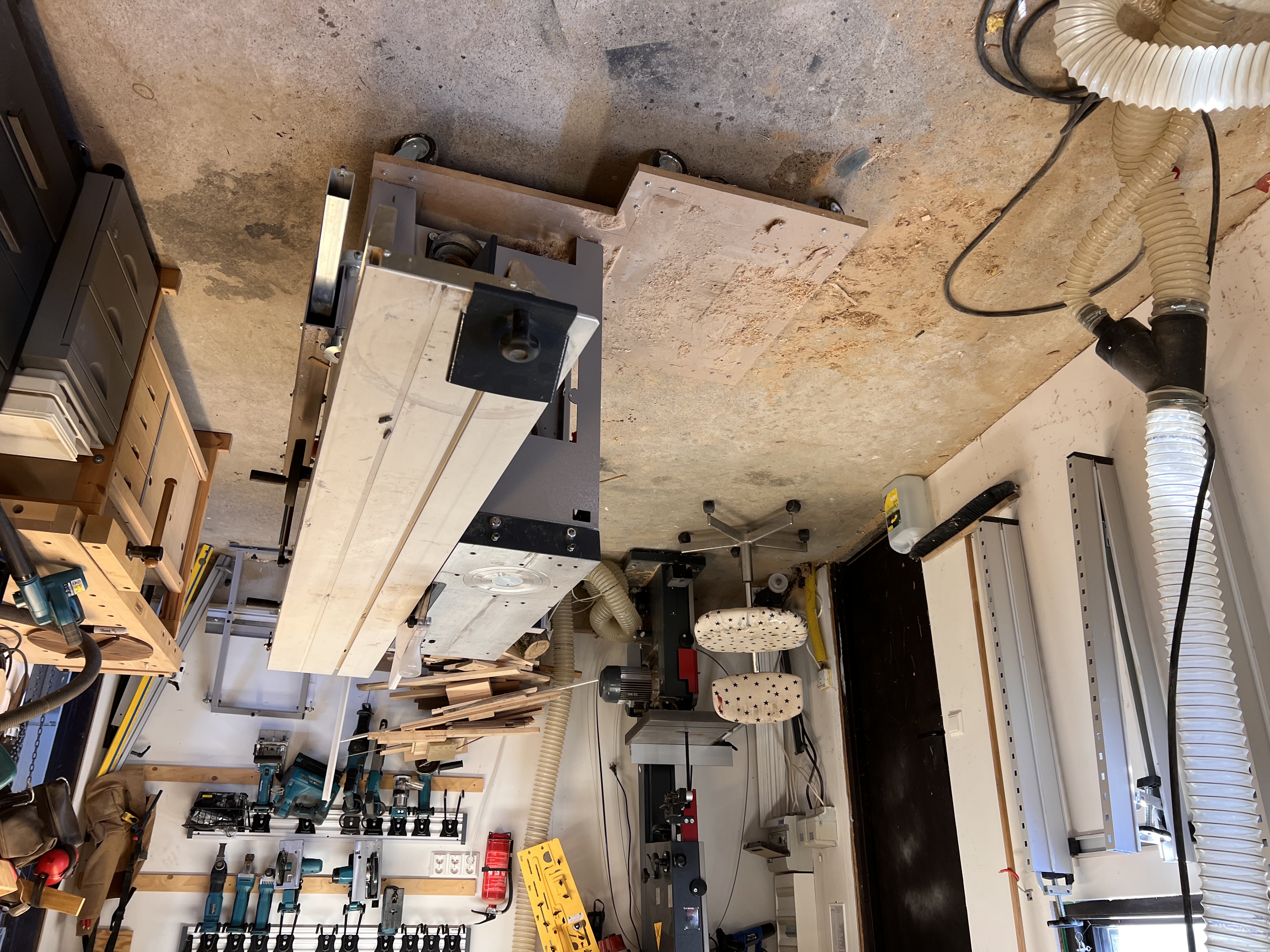 Och passade på att ställa ut den stora sågen i garaget, så man kan ha formatbordet monterat hela tiden. Herregud vilket meck det var att plocka isär den, flytta på den och sedan montera ihop den igen, men äntligen!