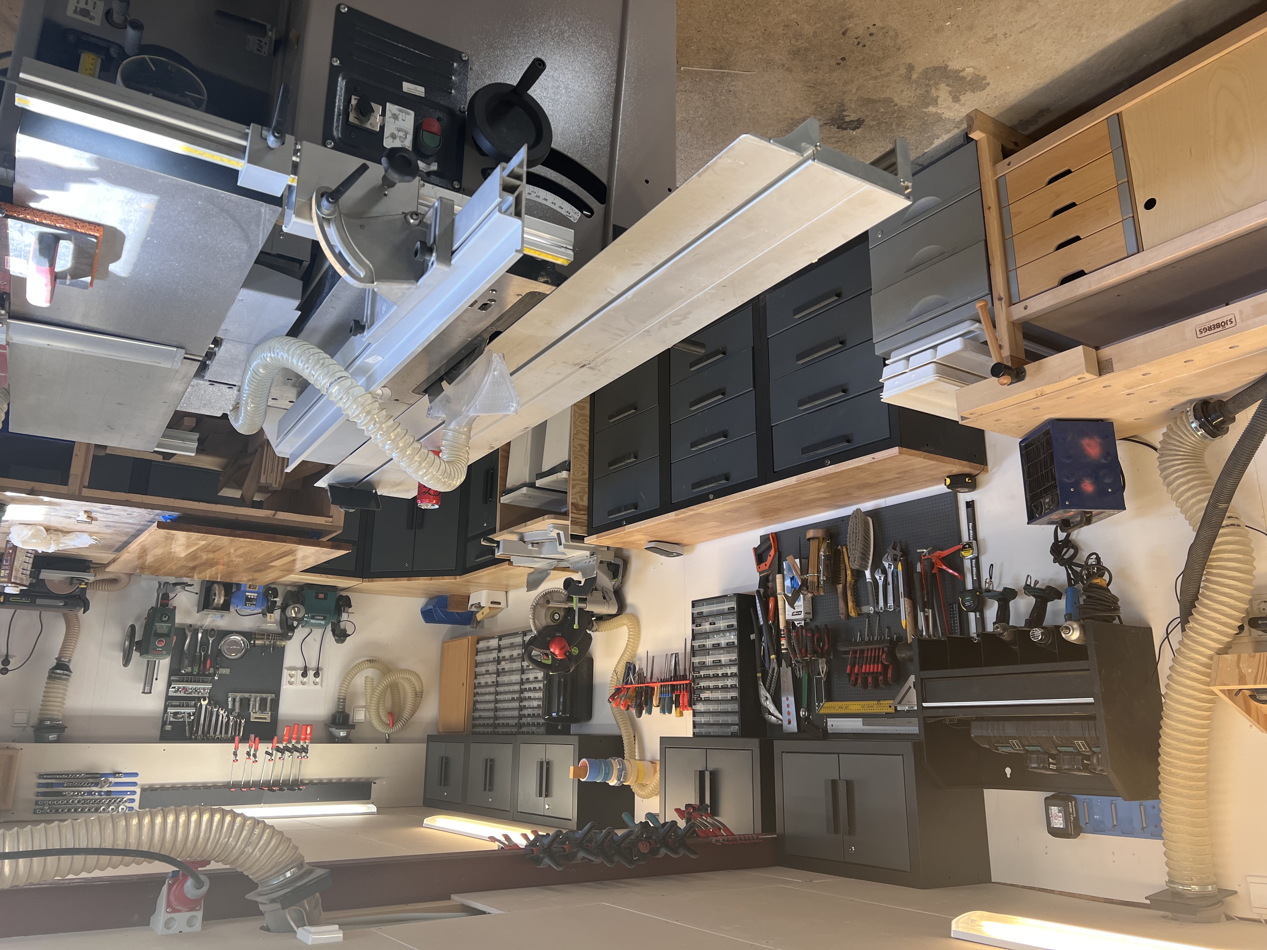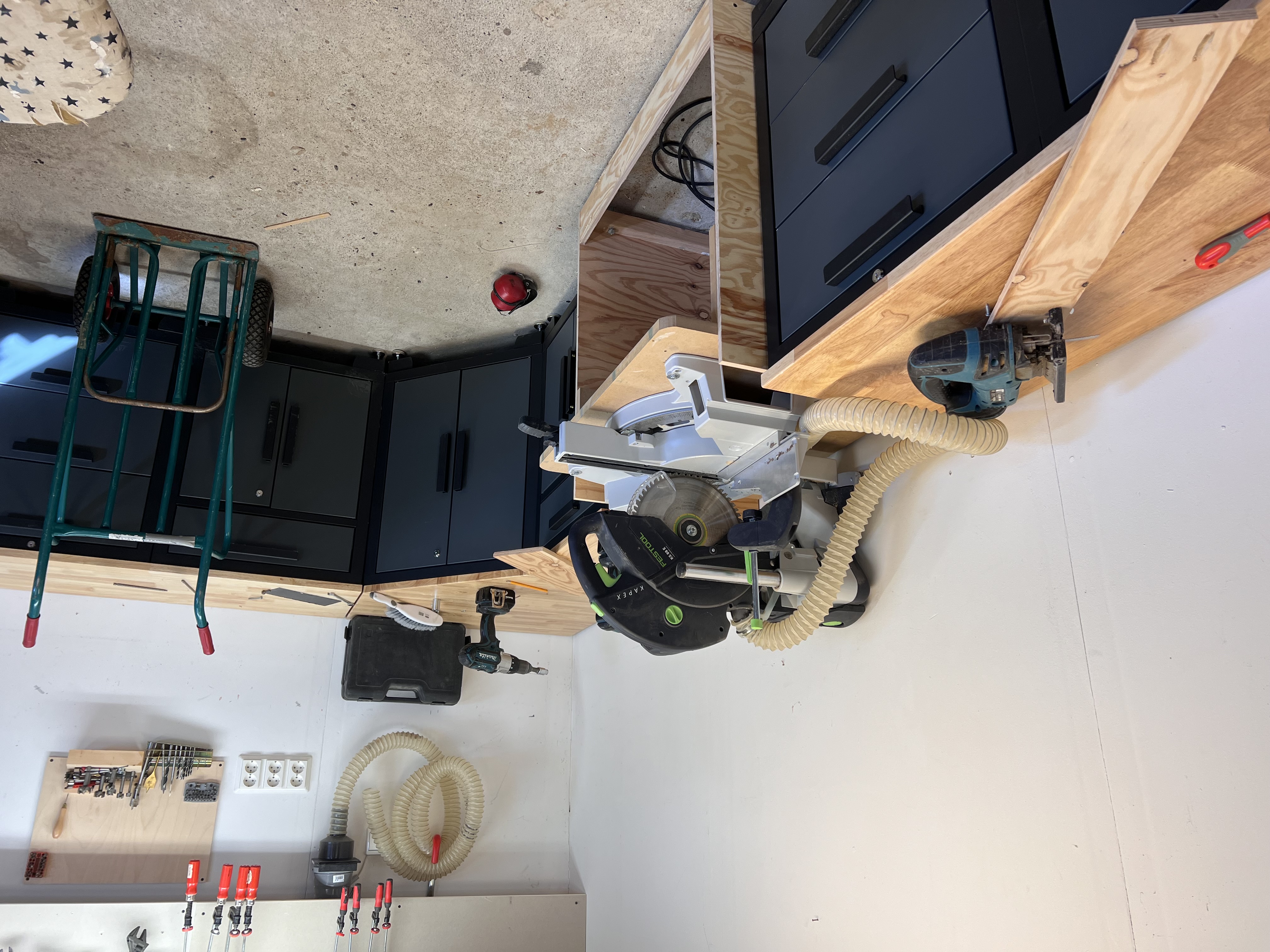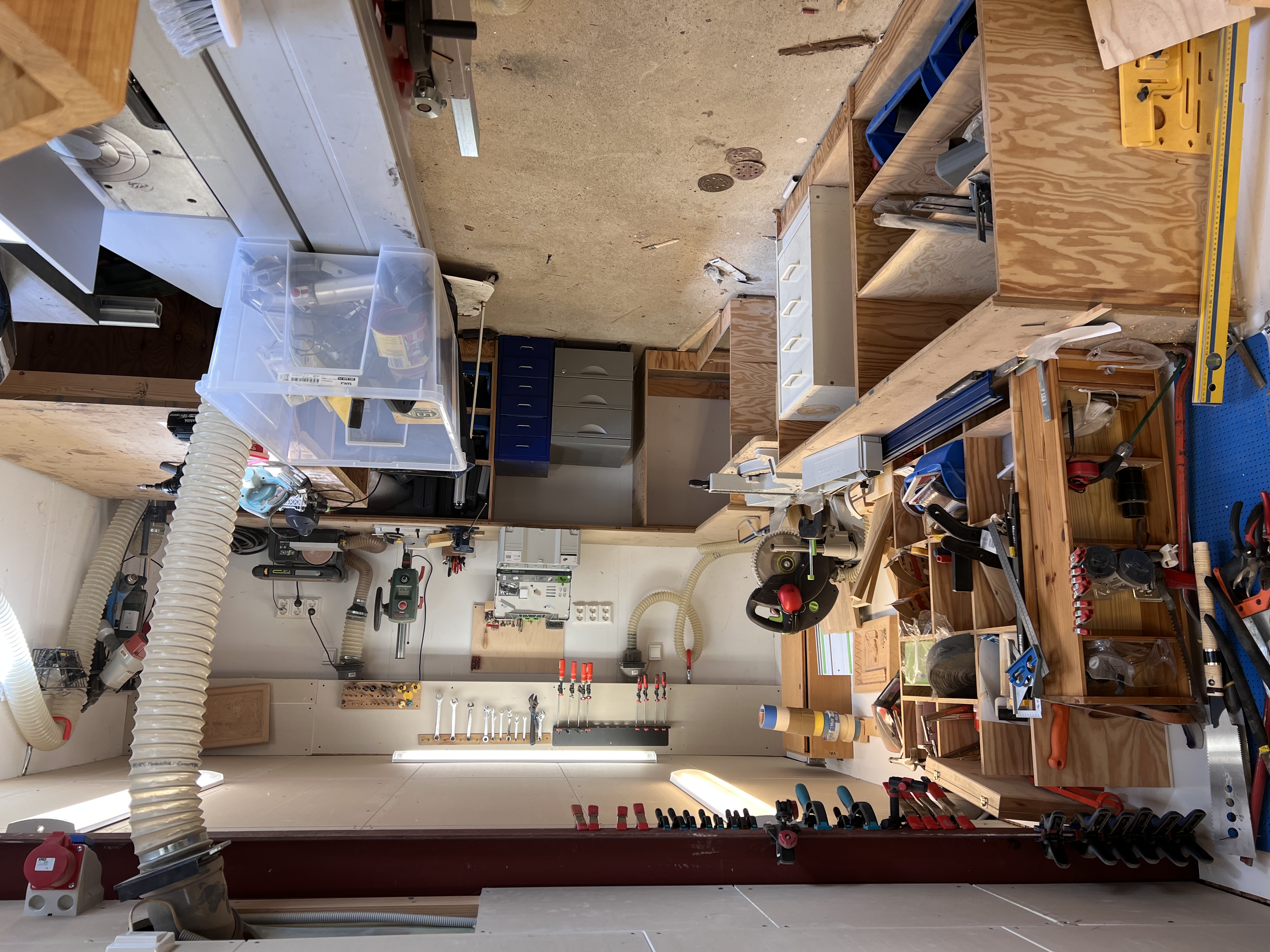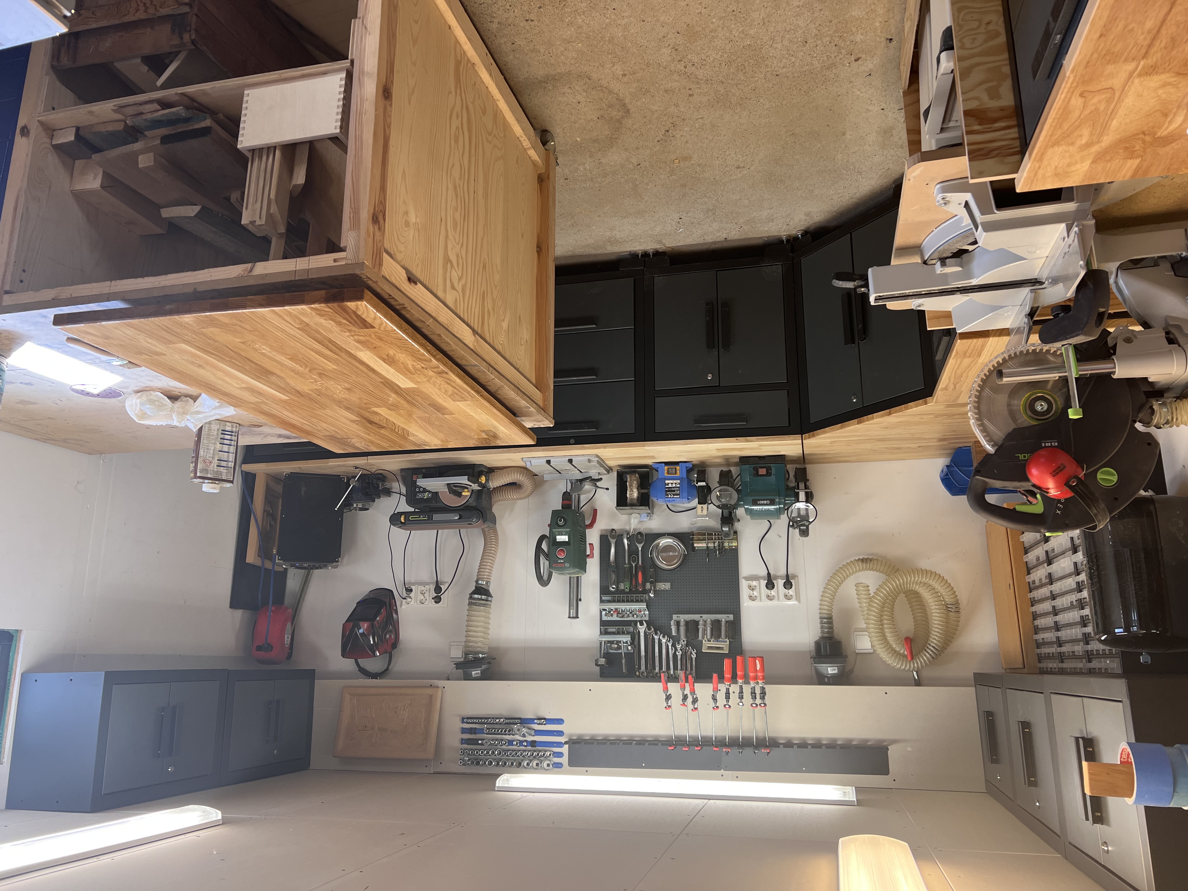 Så här ser verkstaden ut innan, inte en jättebra bild men sågen står i mitten av det här rätt så trånga utrymmet, och det är en rätt stor såg. Sen är en tanke att skaffa lite bättre inredning med skåp och lådor.