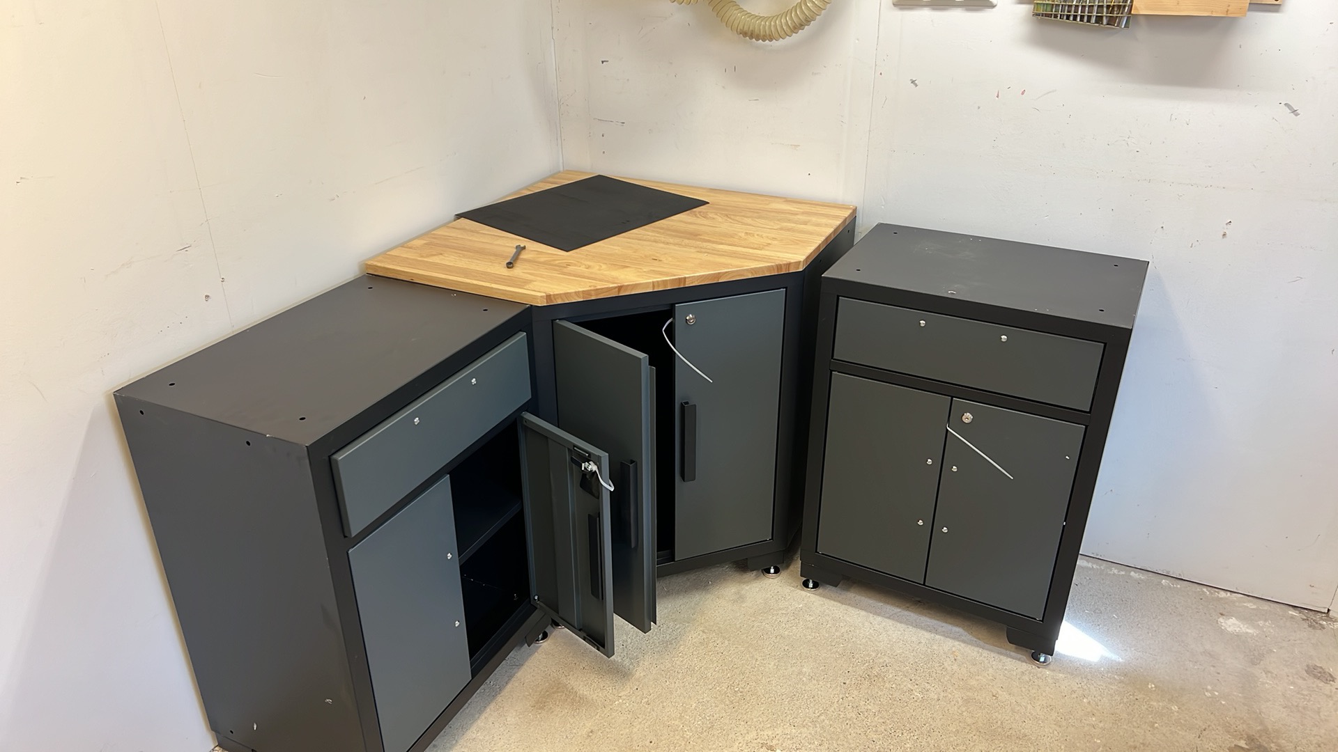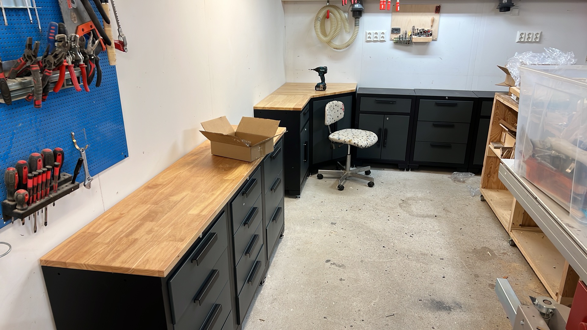 Och börjar bygga ihop Biltemas lådor och skåp, riktigt trevliga är dom