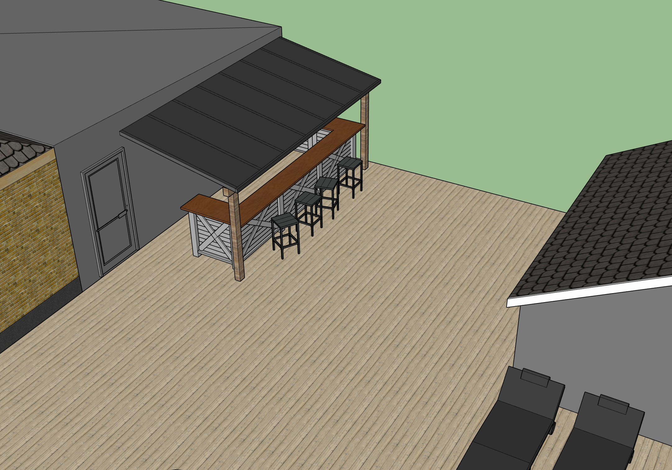 Jag hoppas verkligen vi blir klara med den här, vi vill bygga en utebar på baksidan där det tidigare varit enorma planteringslådor. Men dom ska bort, ny trall ska läggas och en utebar under tak ska byggas!