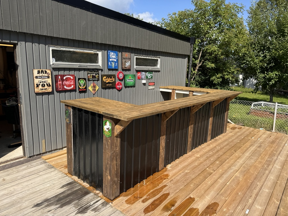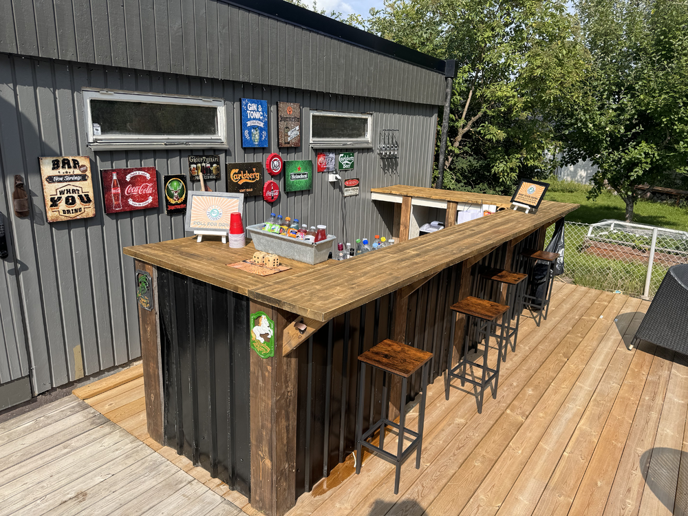 Nu är utebaren klar! En vacker dag vill vi bygga ett tak för den så klart, men än så länge så funkar detta. Här är lite bilder!