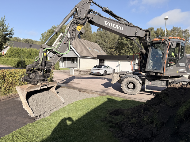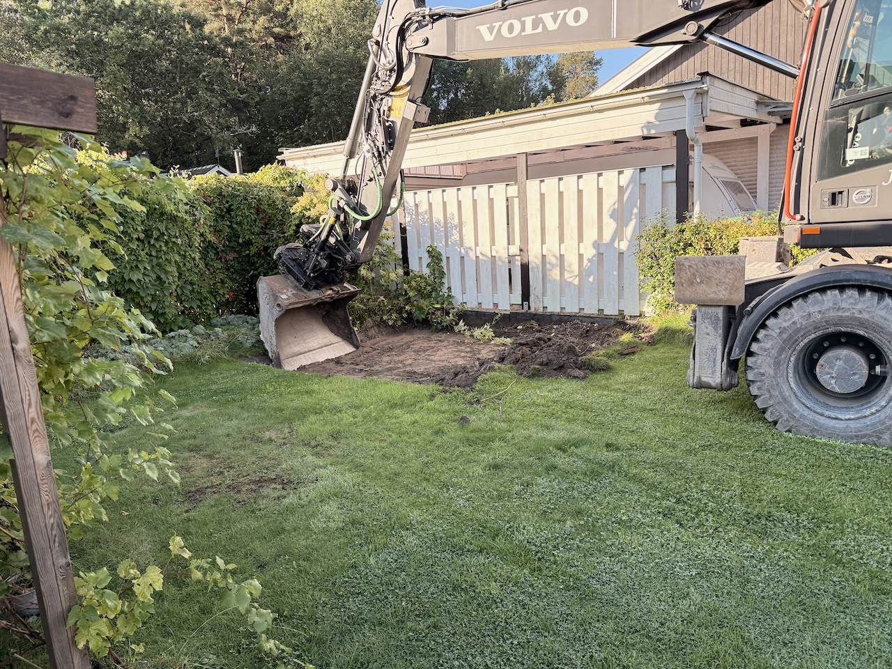 En kompis kusin hade grävskopa och ville gärna hjälpa till mot lite kompensation. Han kom över och hade ett släp grus med sig, sen grävde han ut hela uppfarten på ungefär 30cm djup och tippade i gruset.
