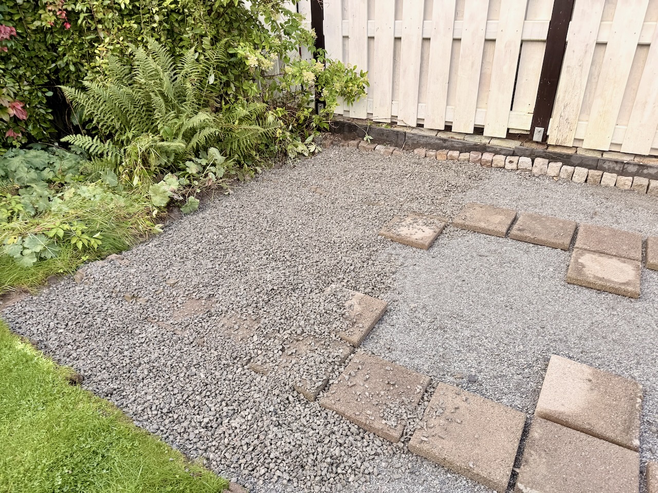 En helkväll med att använda en markvibrator för att platta till bärlager och stenmjölet till en någotsånär platt grund.