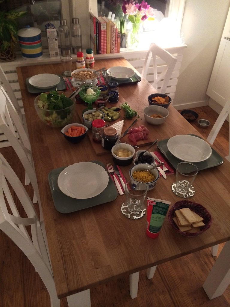 Vi har köpt ett nytt köksbord som är superfint, det kommer från Mio och heter Dalarö och är superfint. Till det har vi stolar som tydligen utgått nu, men dom är också väldigt fina. Vi köpte åtta stolar och en iläggsskiva (snarare påbyggnadsskiva).