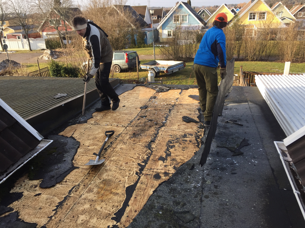 Behöver du byta papptak på garaget? Vårt garage är på 35 kvadratmeter och att anlita någon för att byta tak skulle kosta runt 20 000 kronor. Men eftersom vi ska flytta kändes det som en jobbig kostnad att lägga just nu. Så jag bestämde mig för att göra det själv, har en kompis som har gjort sådant förut så han fick hjälpa till.
