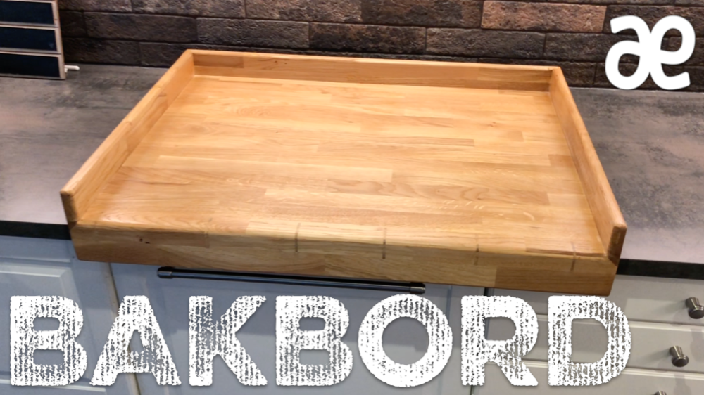 Min svärfar kom till mig och undrade om jag kunde bygga ett bakbord till honom, vilket egentligen bara är en skiva med kanter som man sätter på köksbänken, och så har den en kant som går ned över bänkkanten så den håller sig på plats. Han köpte limfogad ekskiva som jag utgick från. Ett rätt så simpelt bygge egentligen, men det var lite klurigt att få till att vinklar korrekt. Jag valde att limma ihop skivan med fasade kanter och sen sätta in kilar för att stärka upp fogen.