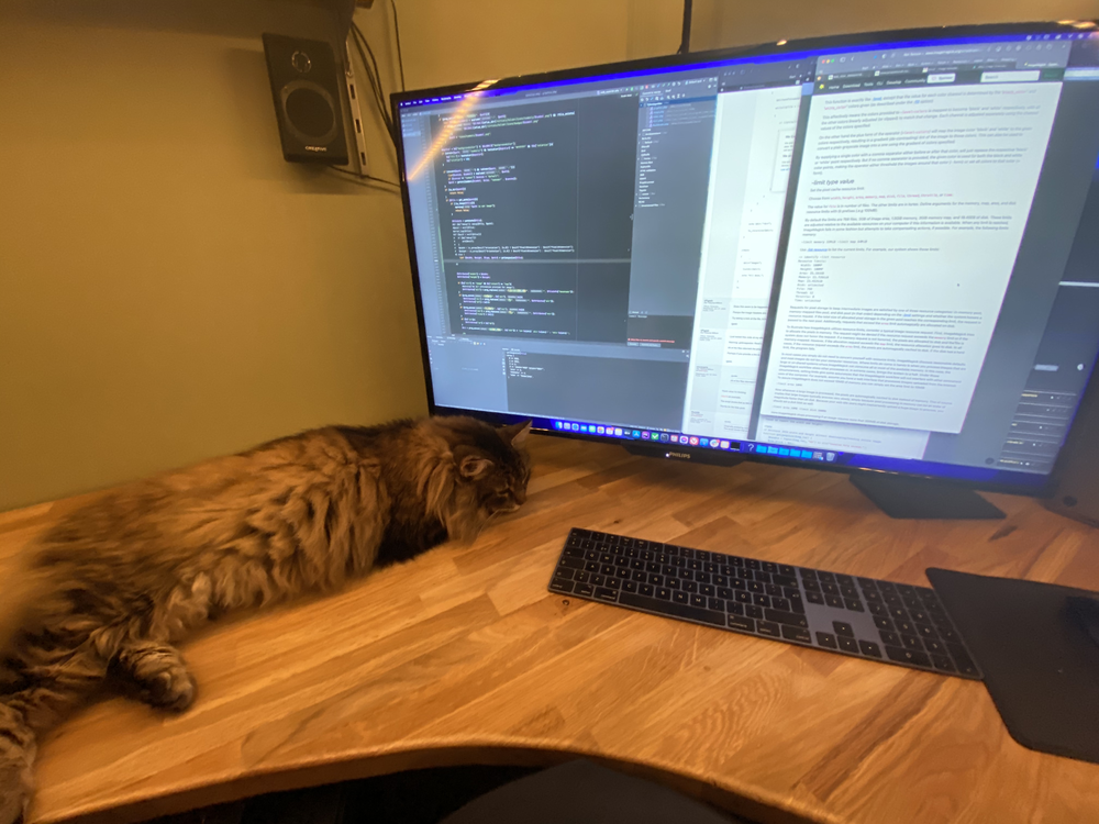Skaffade nyligen en monitorarm till min skärm i kontoret. Jag sitter ofta med benen på bordet och det blir en rätt vriden artbetsställning, men med monitorarmen så kan jag vrida upp skärmen så den är framför mig trots att jag sitter snett så att säga.